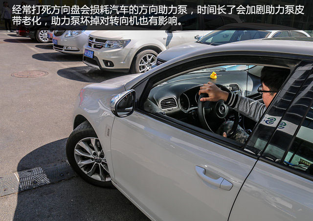 3.原地轉(zhuǎn)向打輪,方向打死,損耗汽車轉(zhuǎn)向助力泵,加劇其老化。 在很小的車位停車時(shí),很多人都習(xí)慣將輪打死再倒車,因?yàn)檐囄槐緛砭托,所以要盡可能地讓汽車轉(zhuǎn)向角度更大。經(jīng)常打死方向盤會(huì)損耗汽車的方向助力泵,時(shí)間長(zhǎng)了會(huì)加劇助力泵皮帶老化,助力泵壞掉對(duì)轉(zhuǎn)向機(jī)也有影響。正確的做法是不要將輪打死,留出一定余量。